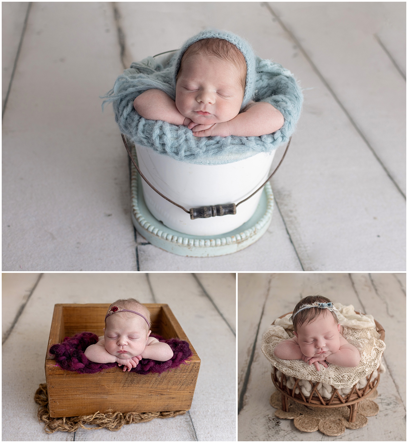 Did you know you get to choose your baby’s forward-facing prop during your newborn session? We offer a beautiful selection of buckets, baskets, and crates, each designed to keep your baby comfortable while creating timeless, artistic images.